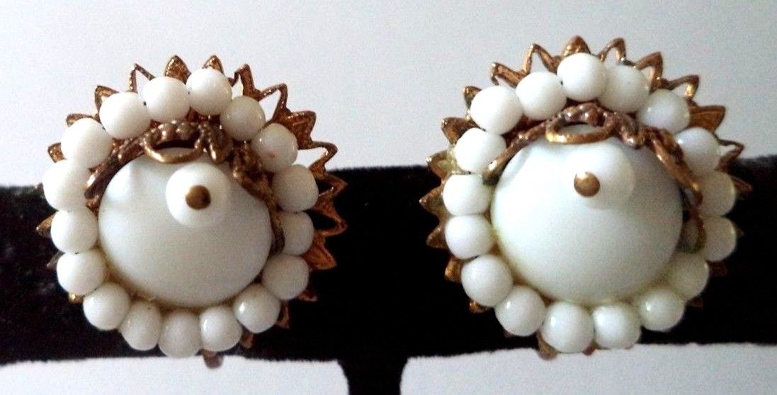 *RARE* VINTAGE UNSIGNED MIRIAM HASKELL MILK GLASS 7/8" SCREW EARRINGS!!! G6844J