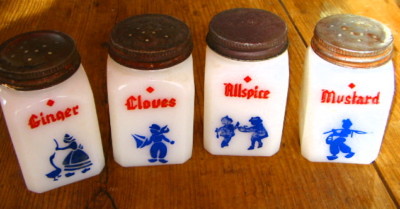 Set 4 milk kitchen glass spice jars/shakers Dutch motif
