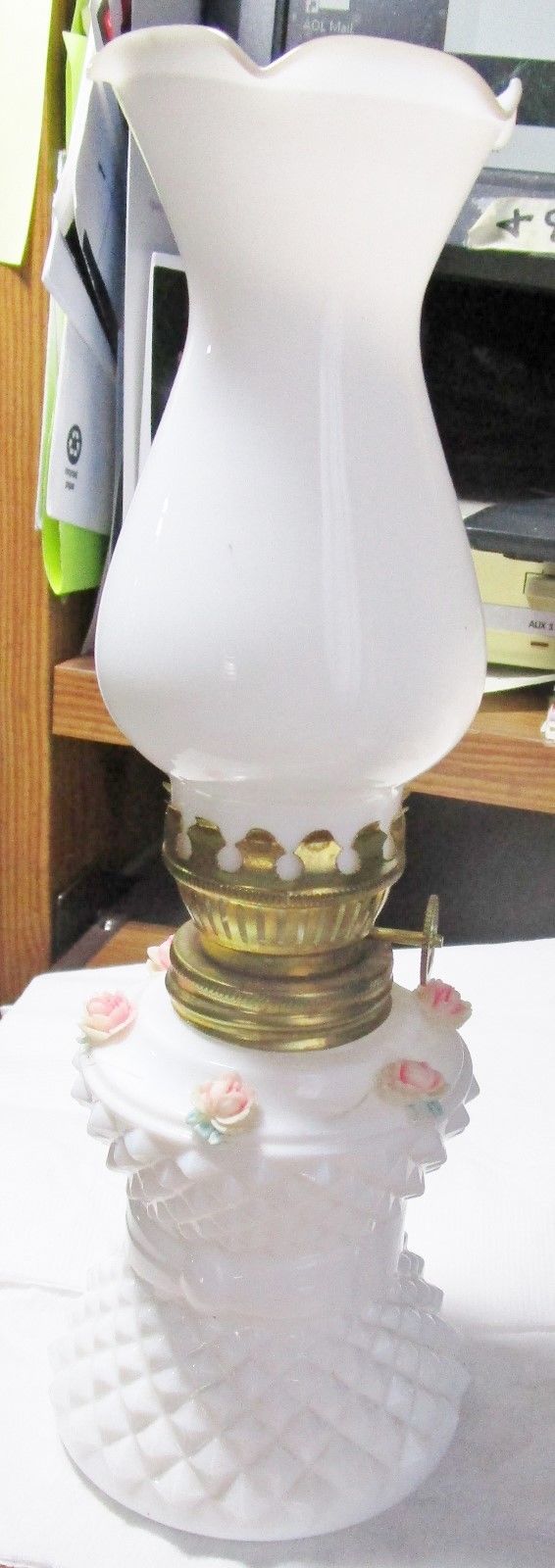 FAIRY LAMP WHITE MILK GLASS WITH MILK GLASS Chimney