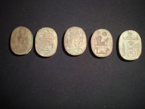 Title (ebay affiliate link): Rare Antique Ancient Egyptian 5 Scarab Beetle New Kingdom HIEROGLYPHS 600-300 BC