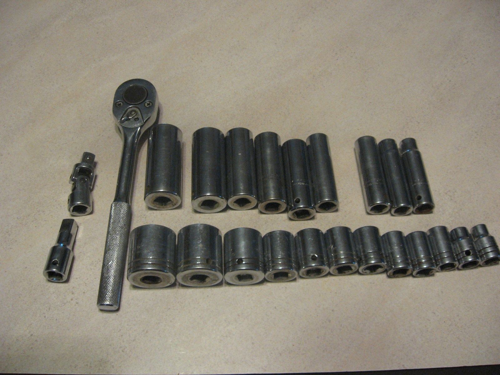 OLDER PROTO 24 PC.-1/2"DRIVE-RATCHET-DEEP WELLS-REG SOCKETS-EXT-SWIVEL LOT-12 PT