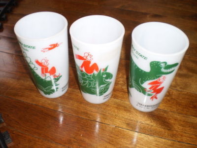 VINTAGE AH MILK GLASS CUPS MOTHER BAY STATE DINOSAUR