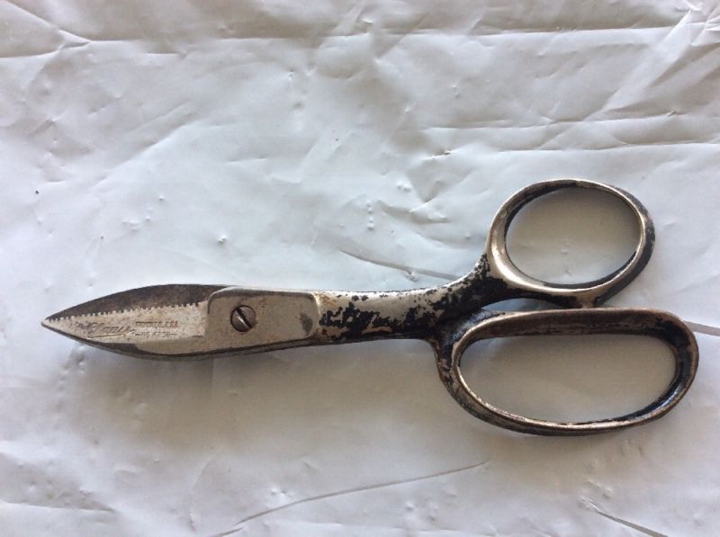 Title (ebay affiliate link): Vintage Clauss Scissors 4258 Shears USA One Serrated Blade Hardened Steel Tools