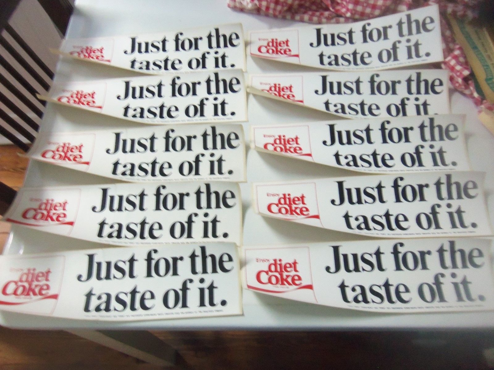 Title (ebay affiliate link): Lot of 10 Vintage Diet Coke Stickers Just For The Taste Of It - New / Old Stock