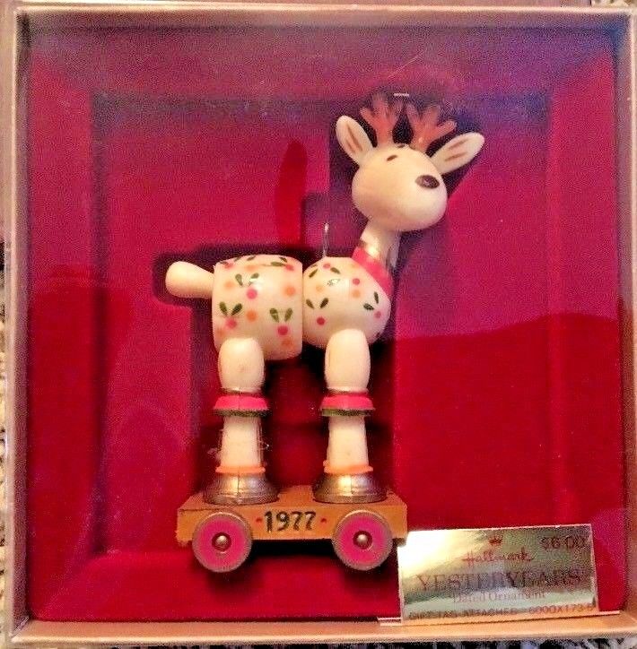 Title (ebay affiliate link): Dated 1977 Yesteryears Hallmark Reindeer Pull Toy Christmas Tree Ornament IOB