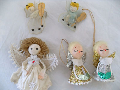 Title (ebay affiliate link): 5 VTG SPUN COTTON HEAD ANGELS CHRISTMAS ORNAMENTS lot