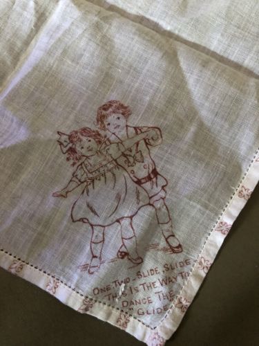Title (ebay affiliate link): ANTIQUE HANDKERCHIEF RED & IVORY CHILD''S MUSICAL NURSERY QUILT BLOCK