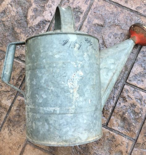 Title (ebay affiliate link): Vintage Galvanized Metal Watering Can~Red Sprinkler Head~Original Pricing!