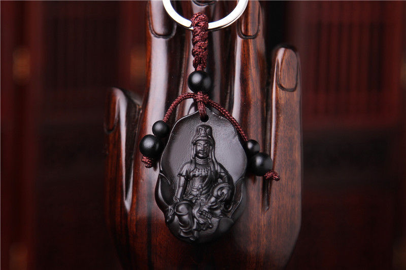 Title (ebay affiliate link): Ebony Wood Carving Chinese Kwan Yin Lotus Statue Sculpture Pendant Key Chain