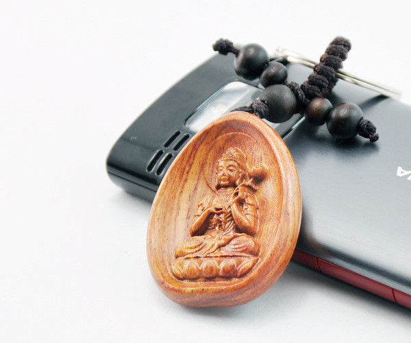 Wood Carving Chinese Mahasthamaprapta Kwan Yin Buddha Statue Pendant Key Chain