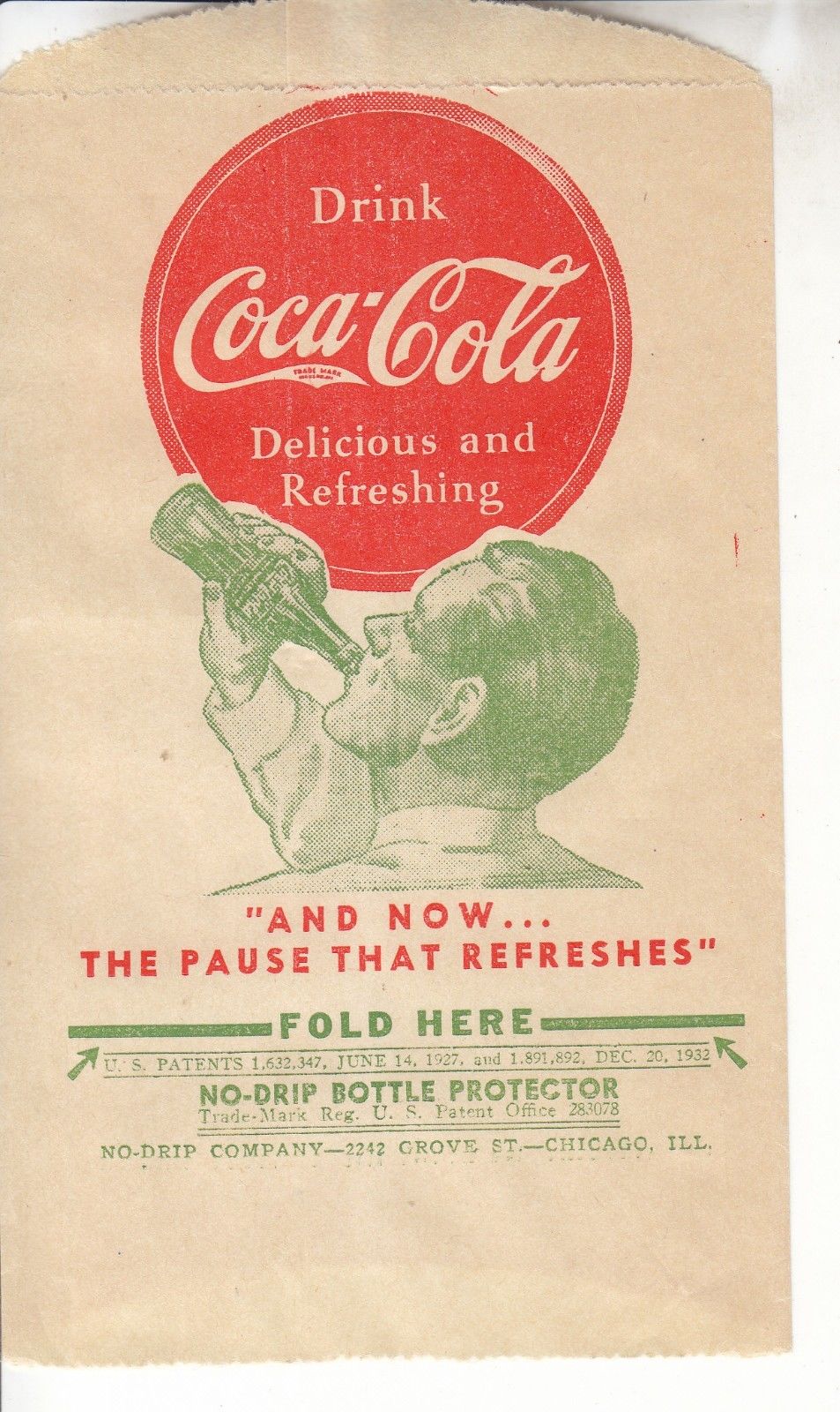 1930s?? COCA-COLA DRI SERVER OR NO DRIP NOS MINT MAN DRINKING COCA--COLA