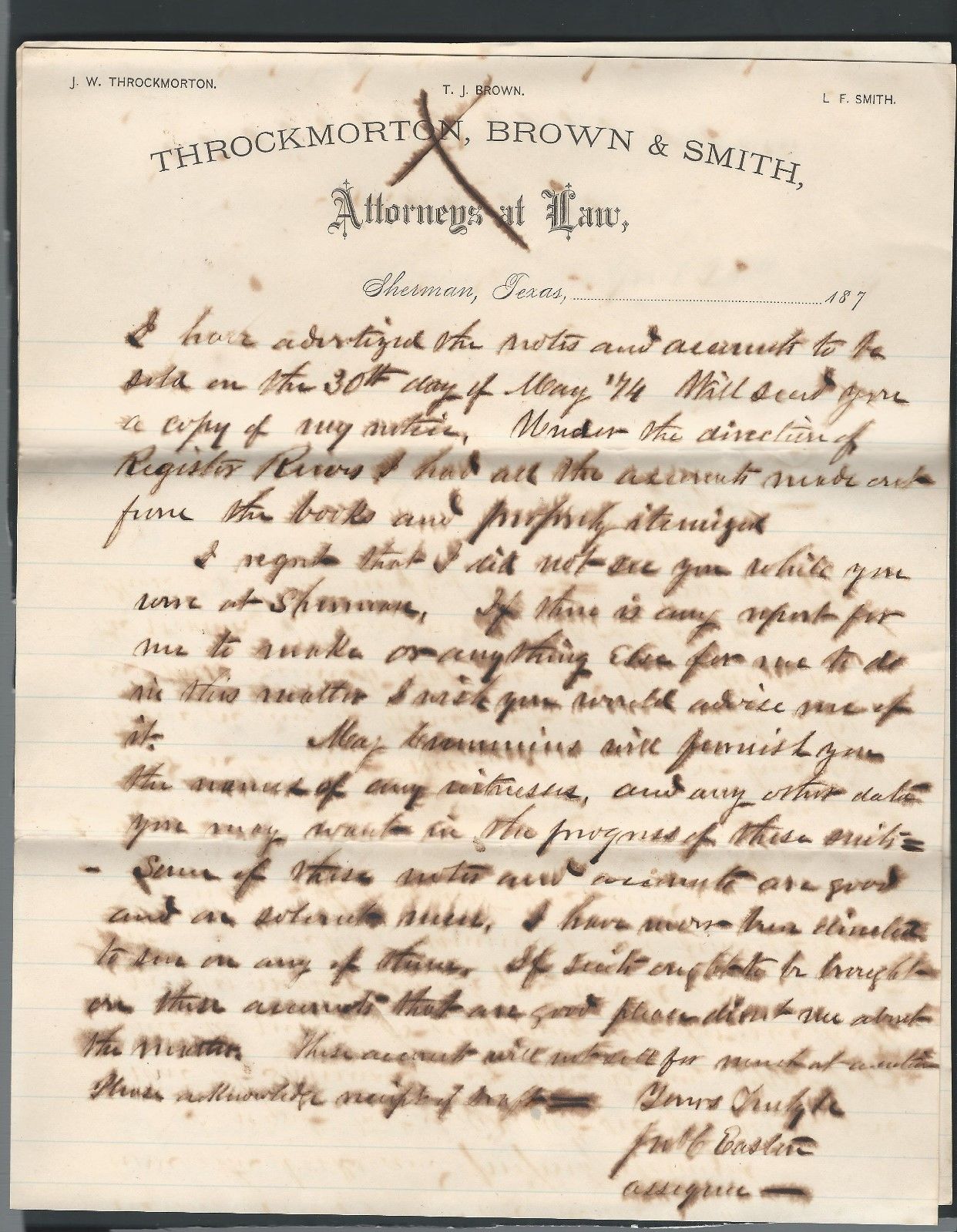 Why Buy My Own Letterhead, I''ll just reuse this one!! Sherman, Tx 1874!!!