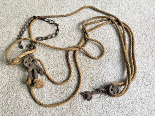 Title (ebay affiliate link): VTG Hoist Pulley OLD FARM Fence Stretcher W/ ROPE BLOCK TACKLE tool barn tool