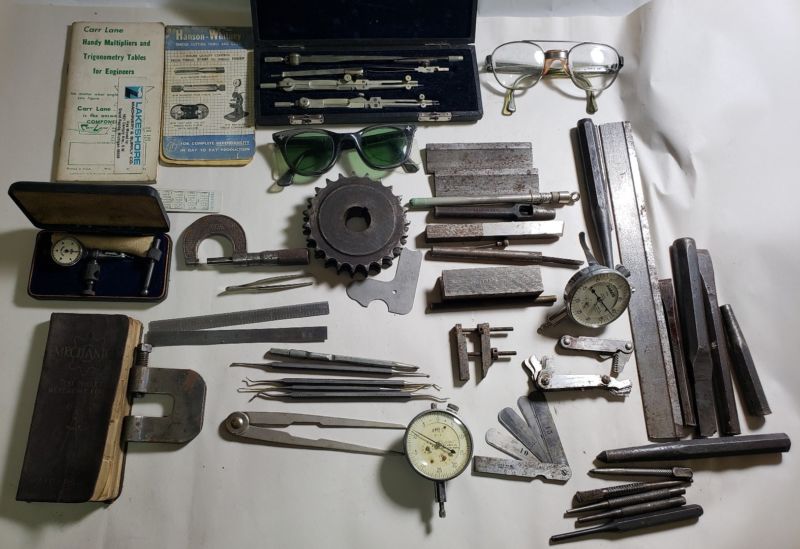 Title (ebay affiliate link): Vintage Lot of Machinist tools indicator gages tooling micrometer punches lathe