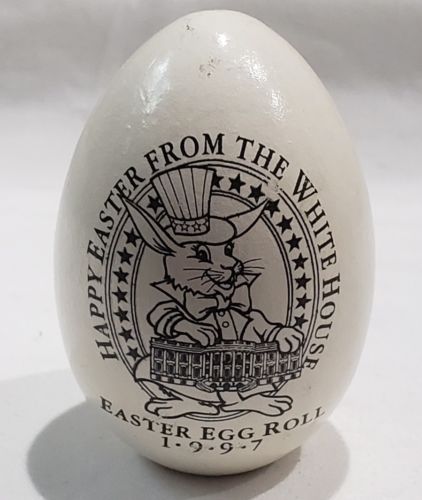 Title (ebay affiliate link): *SUPER RARE* 1997 White House WHITE Wooden EASTER EGG Roll Bill Hillary Clinton