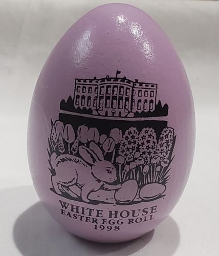 Title (ebay affiliate link): *SUPER RARE* 1998 White House Lavend Wooden EASTER EGG Roll Bill Hillary Clinton