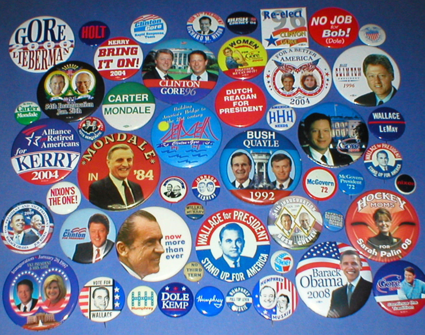 Title (ebay affiliate link): 50 pc LARGE political campaign pinback button collection lot Republican Democrat