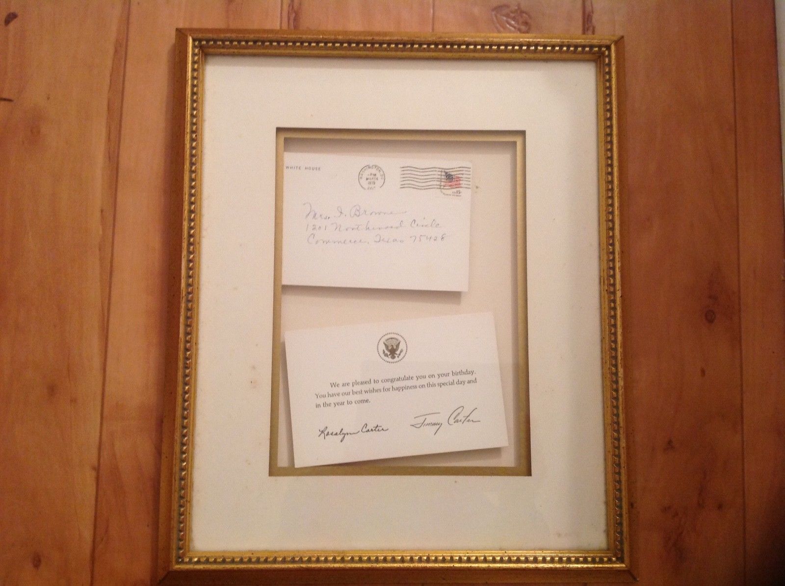 Title (ebay affiliate link): Gold Leaf Frame 16"x13" President Jimmy Carter Birthday Greeting