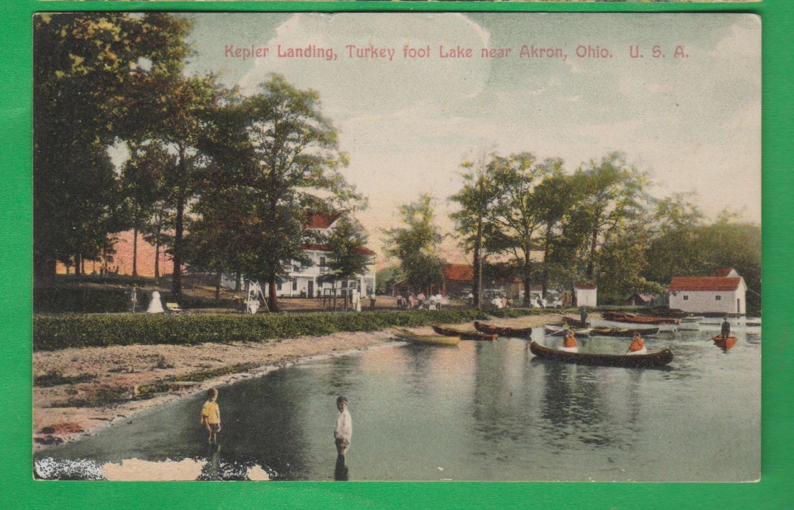 Akron, Oh/ Turkey Foot Lake/ Kepler Landing/ boats/ people in water/postcard