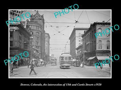 OLD LARGE HISTORIC PHOTO OF DENVER COLORADO, VIEW OF 15th & CURTIS STREETS c1915