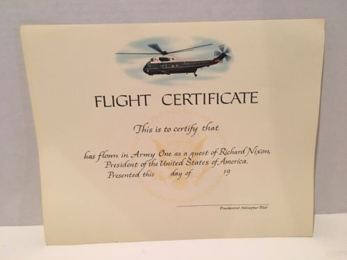 Title (ebay affiliate link): Nixon Era Army One Guest Flight Certificate (Duplicate #4)