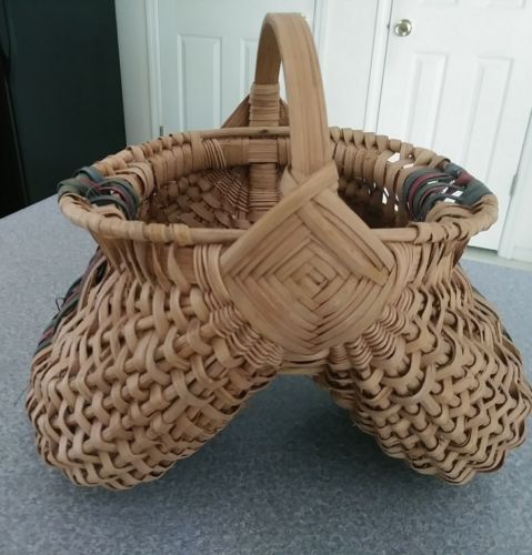Title (ebay affiliate link): Antique Primitive Gathering Egg Medium Woven Splint Handmade Basket Buttocks