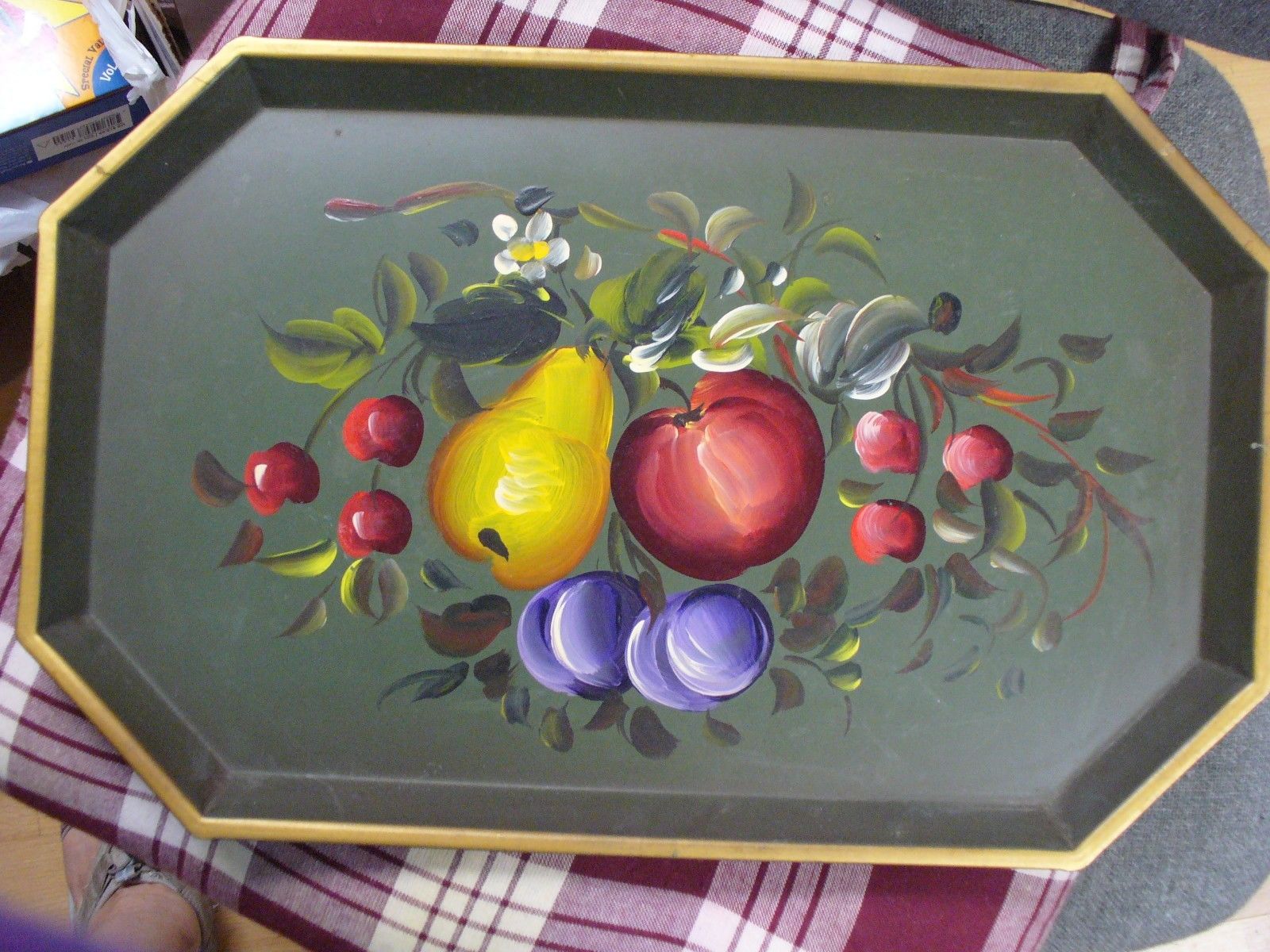 Title (ebay affiliate link): Vintage Nashco Hand Painted Tole Tray Fruit Floral Cherries Pear Plum Apple