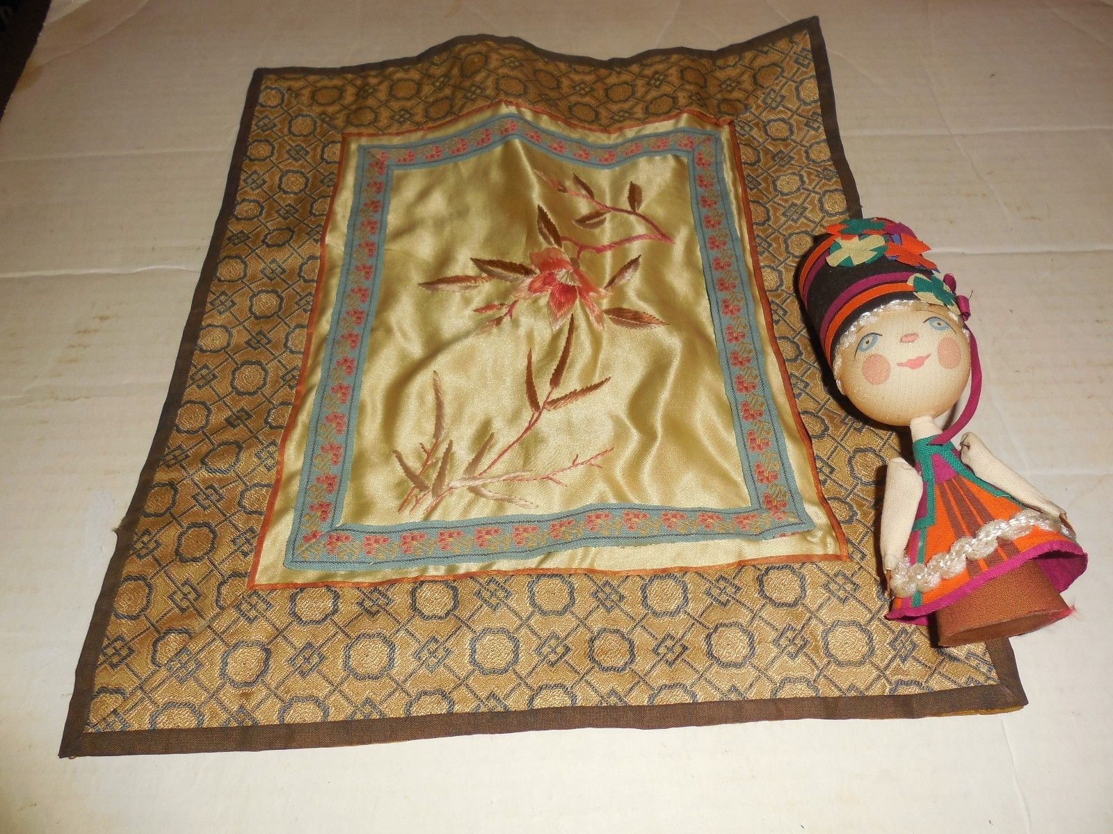 Title (ebay affiliate link): Vintage Oriental Japanese Silk / Cloth Embroidered Flower Picture + Doll collect