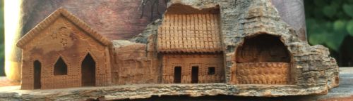 Vintage Hand Carved Village Wood Bark, Made In Mexico