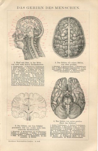 1894 HUMAN BRAIN ANATOMY Antique Engraving Print