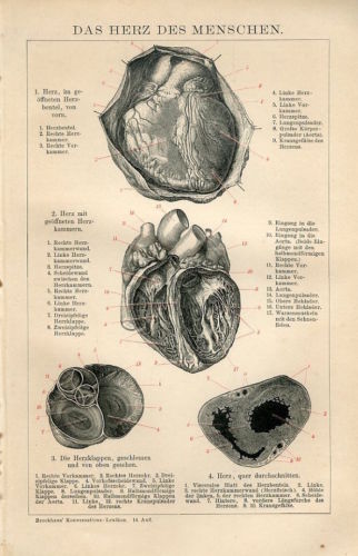 1894 HUMAN HEART ANATOMY Antique Engraving Print