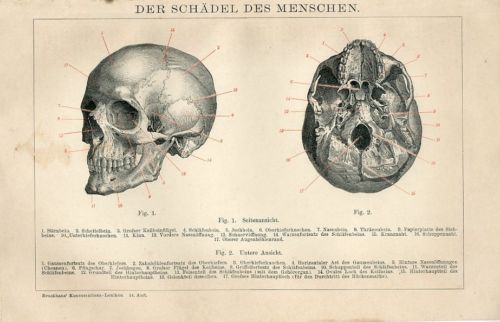 1894 HUMAN SKULL Antique Engraving Print