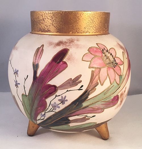Title (ebay affiliate link): 19th C Moore & Co Antique English Hand Painted Floral Tri-Foot Vase - N/R