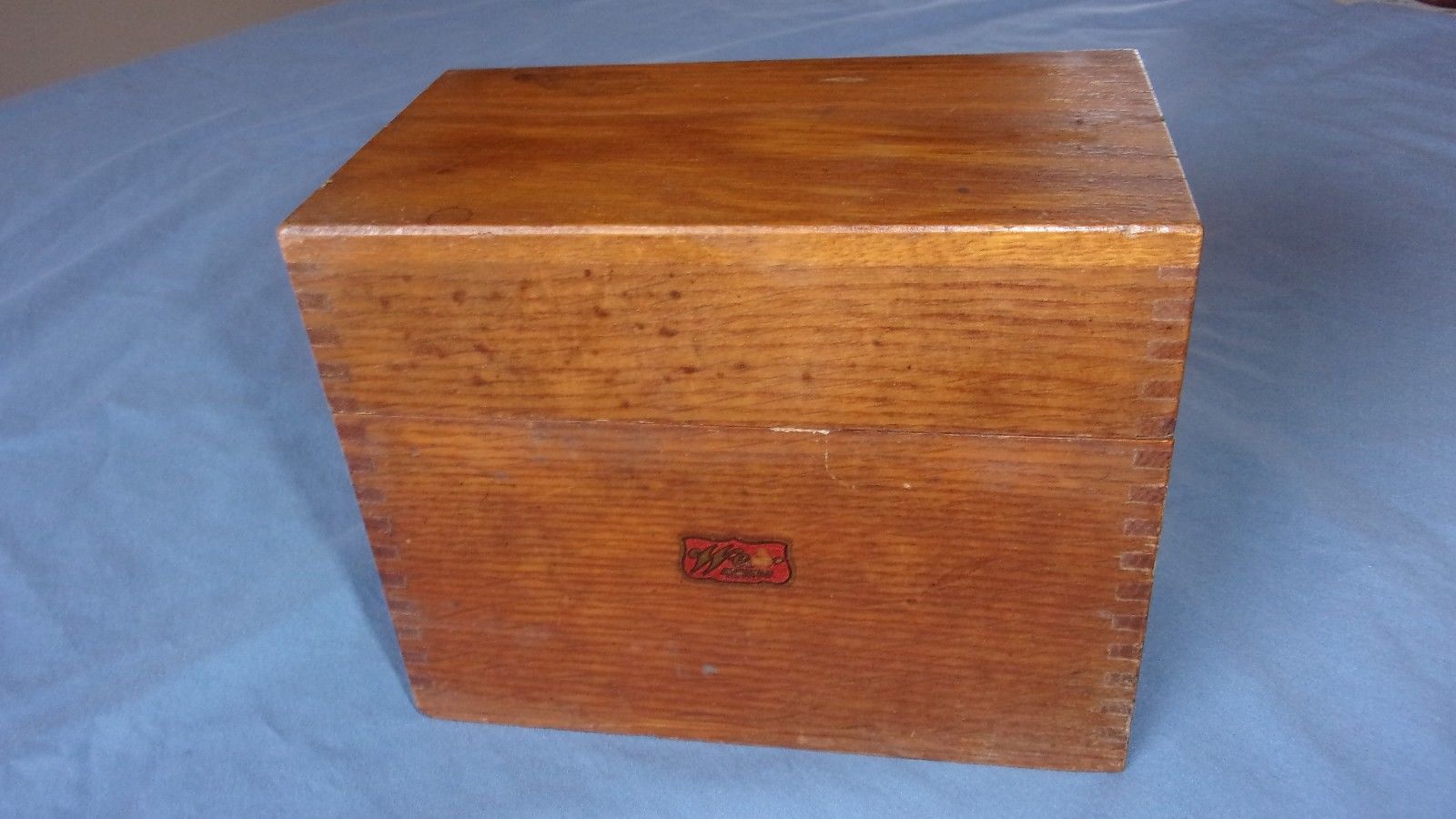 Title (ebay affiliate link): Vtg Weis Wooden Library Index Storage Box Dovetail Corners 6 3/4 x 3 7/8 x 5 1/4