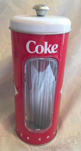 Title (ebay affiliate link): Coca-cola Tin Collectible Drinking Straw Holder Dispenser With 50 Straws .