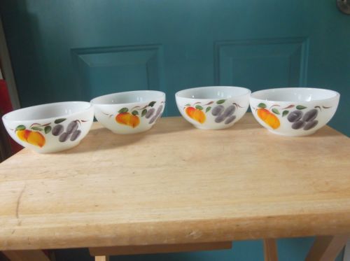 Title (ebay affiliate link): Four Fire-King Gay Fad Milk Glass Soup, Cereal or Chili Bowls Fruit Design