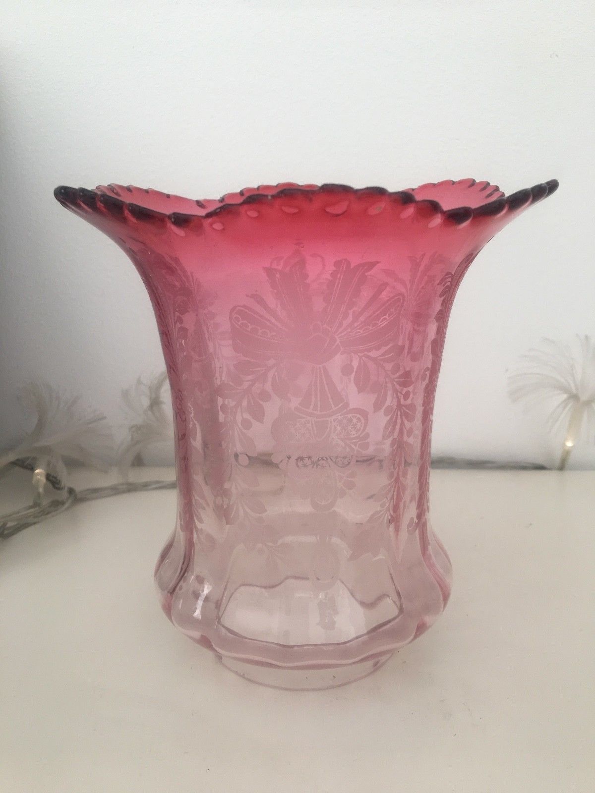 Title (ebay affiliate link): antique cranberry pink acid etched small oil lamp shade,