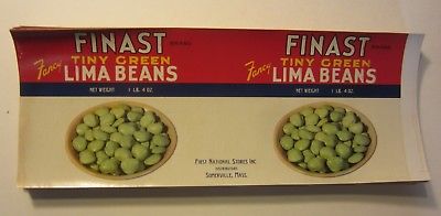 Wholesale Lot of 100 Old Vintage 1950''s FINAST Lima Bean CAN LABELS - Somerville