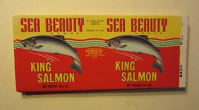 Title (ebay affiliate link): Wholesale Lot of 100 Old Vintage - Sea Beauty KING SALMON Can LABELS - Seattle