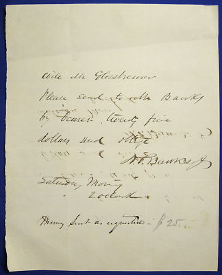 Title (ebay affiliate link): Nathaniel P Banks Signed Note as Congressman