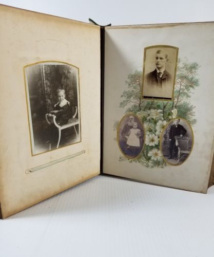 Title (ebay affiliate link): ANTIQUE PHOTO Leather bound BOOK loaded with 46 pictures 1 post card