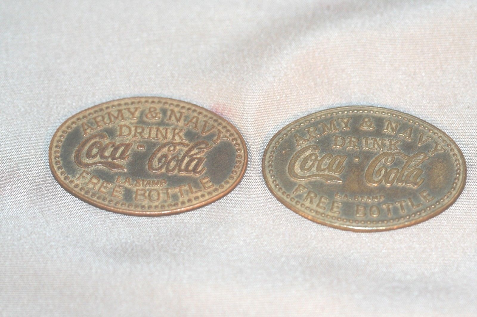 Vintage Brass LA Stamp Drink Coca Cola Army and Navy Free Bottle Tokens