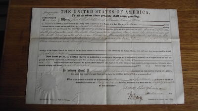 Title (ebay affiliate link): Original 1859 USA Land Grant, Buchanan/Jacob Wolfert