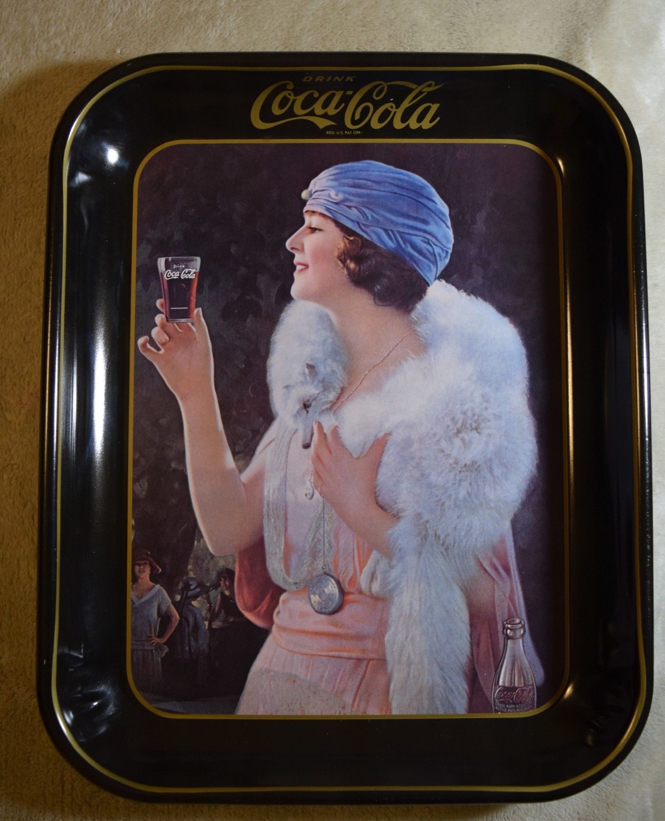 Title (ebay affiliate link): Vintage Coca-Cola Metal Tray, Woman with Fox Fur Holding Coke, 10" X 13"