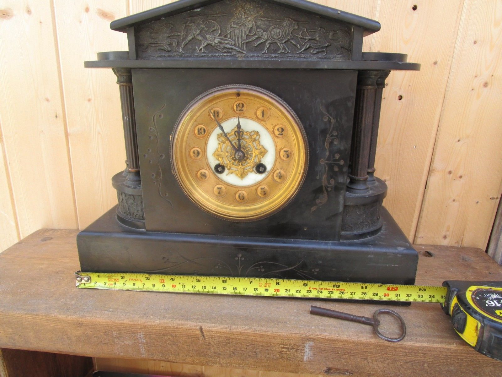 Title (ebay affiliate link): ANTIQUE EXPOSITION UNIVERSELLE 1889 BLACK SLATE PENDULUM MANTLE CLOCK