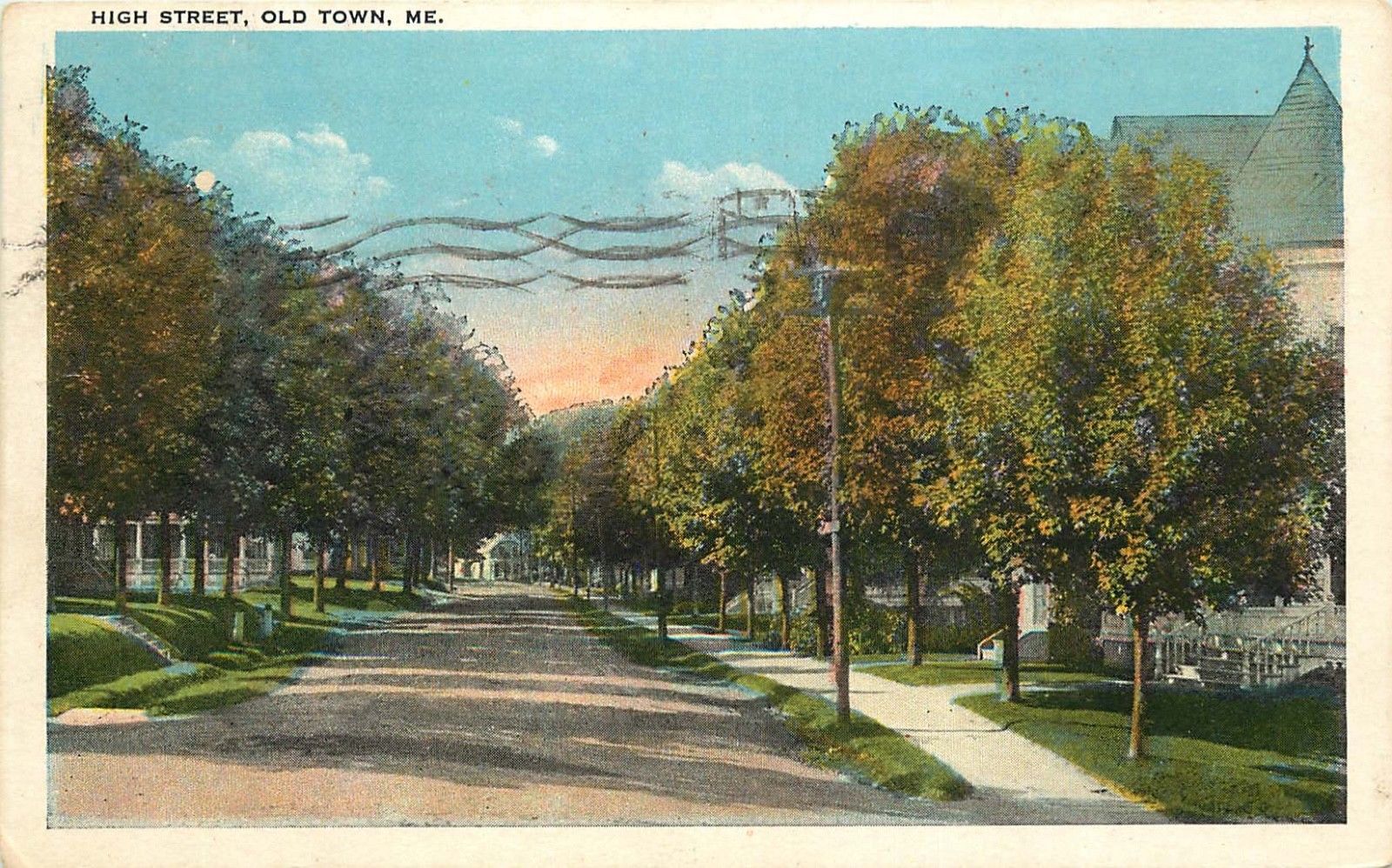 Old Town, Maine, ME, High Street, White Border Vintage Postcard d3353