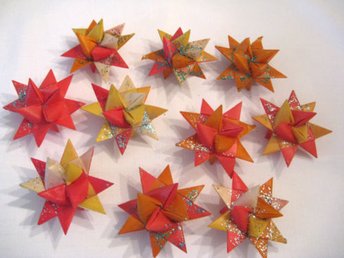 Title (ebay affiliate link): Lot of 10 Vintage Wax Paper Coated Christmas Star Ornaments with Glitter