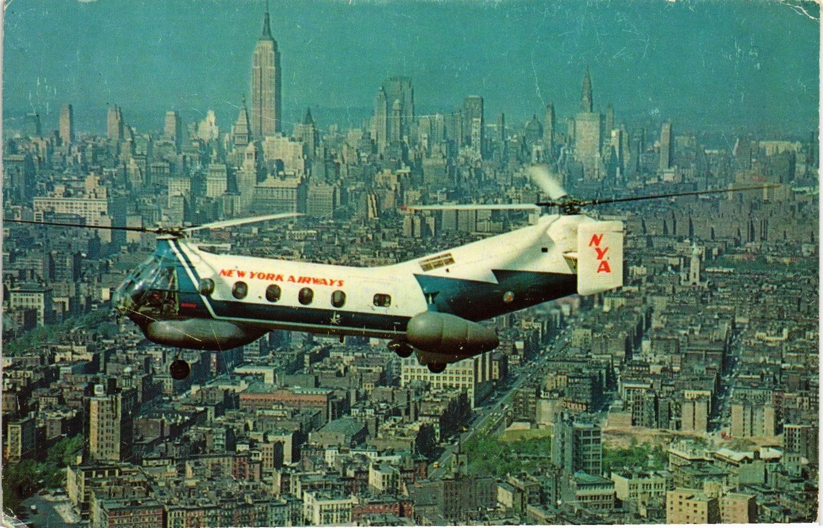 Title (ebay affiliate link): DR JIM STAMPS US POSTCARD NEW YORK AIRWAYS VERTOL 44B HELICOPTER OVER MANHATTAN