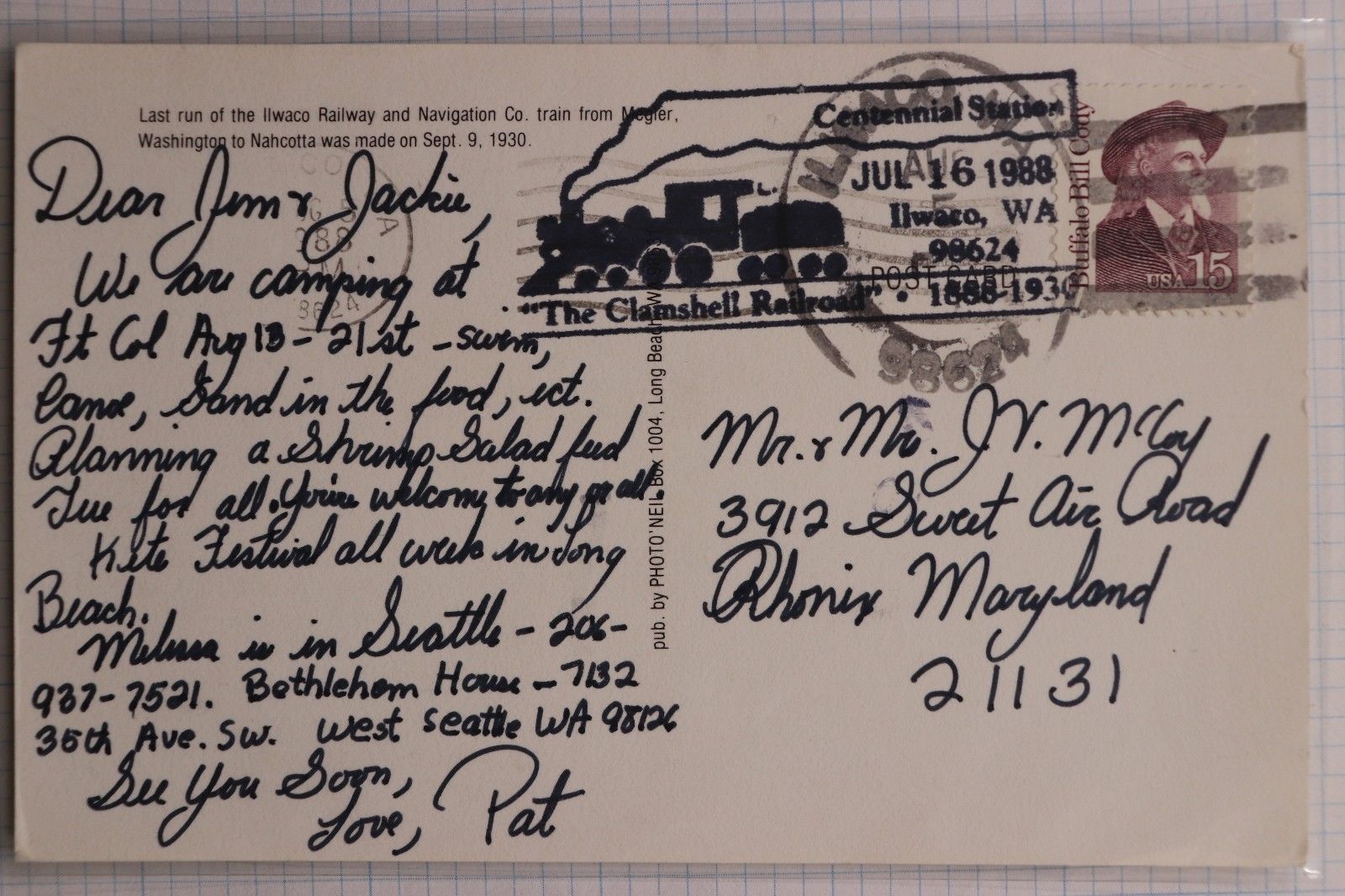 clamshell railroad centennial station Postcard 1988 Ilwaco WA Last Run reprint