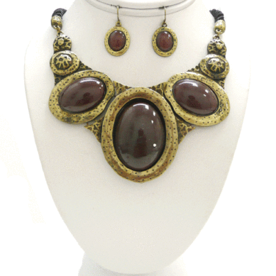 ANTIQUE CHICOS GOLD/BROWN COBOCHON NECKLACE SET!